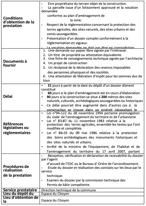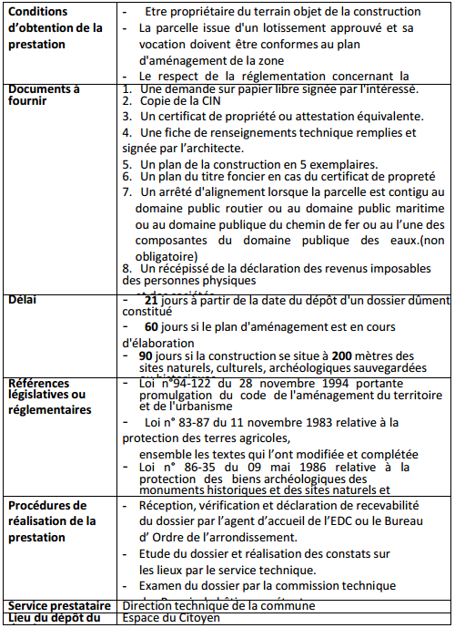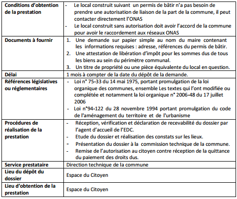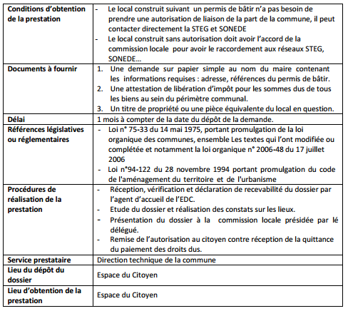 Autorisation de raccordement aux réseaux publics (SONEDE, STEG)