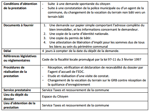 Changement de la vocation d’un terrain non bâti vers un terrain bâti