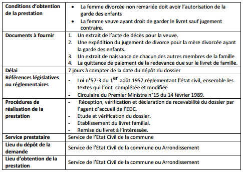 Obtention d’un duplicata de livret de famille pour une femme divorcée non remariée ou veuve