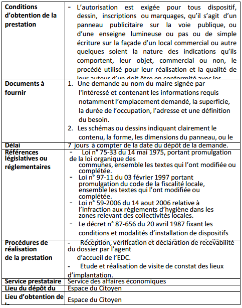 Autorisation d’implantation des panneaux publicitaires, enseignes ou écritures